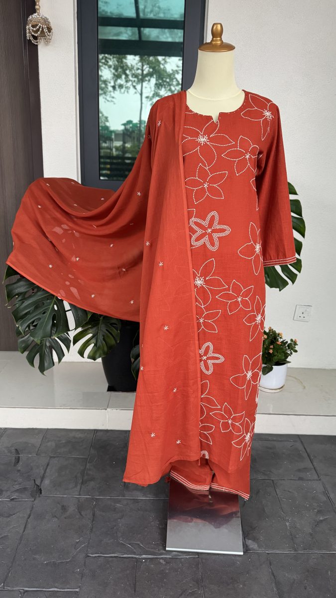 KCH0060:Orange Bloom Cotton Kurta Suit