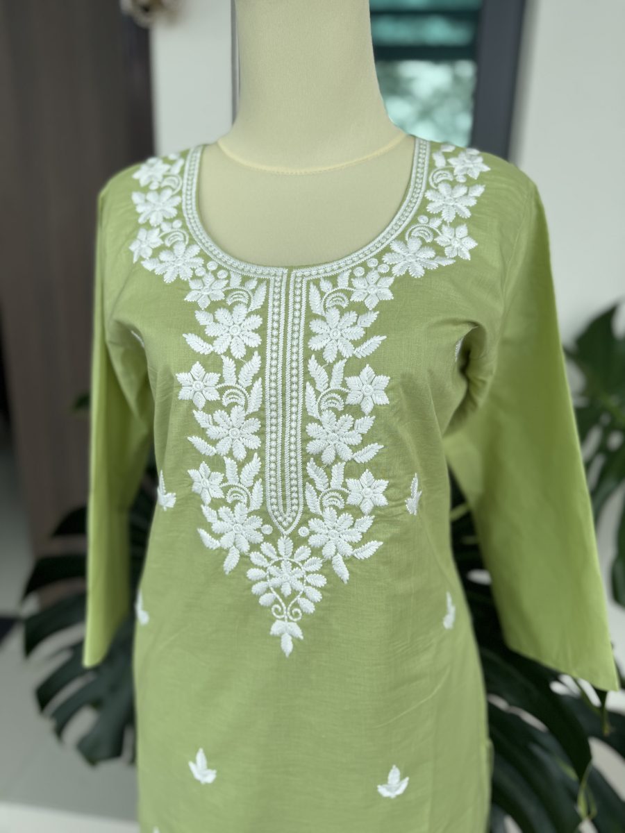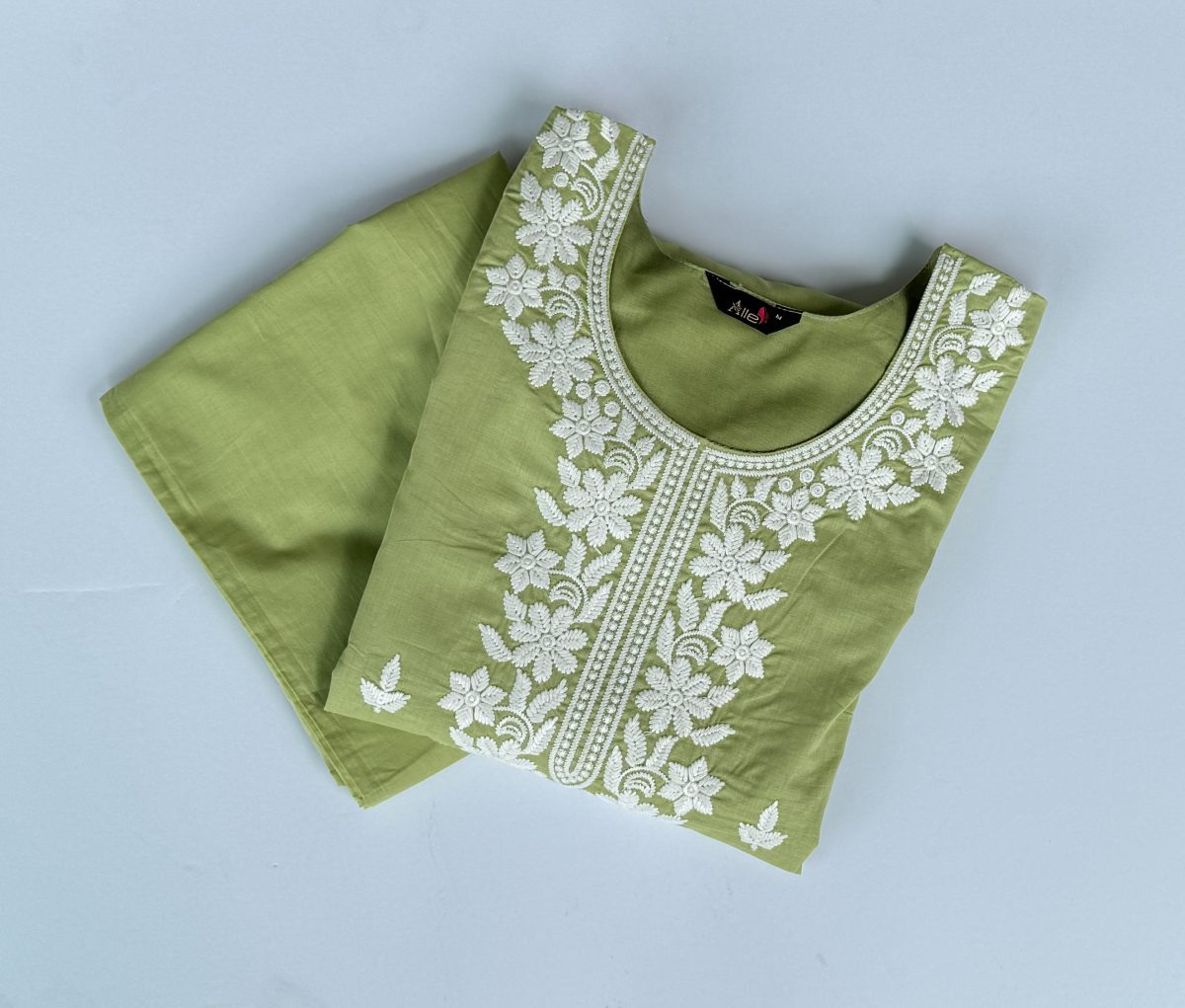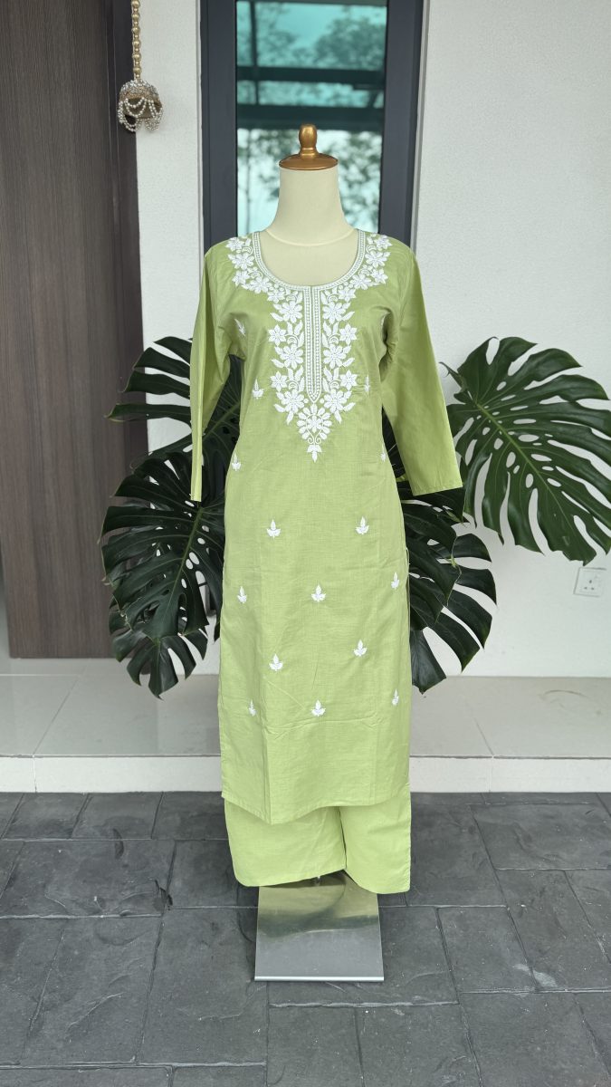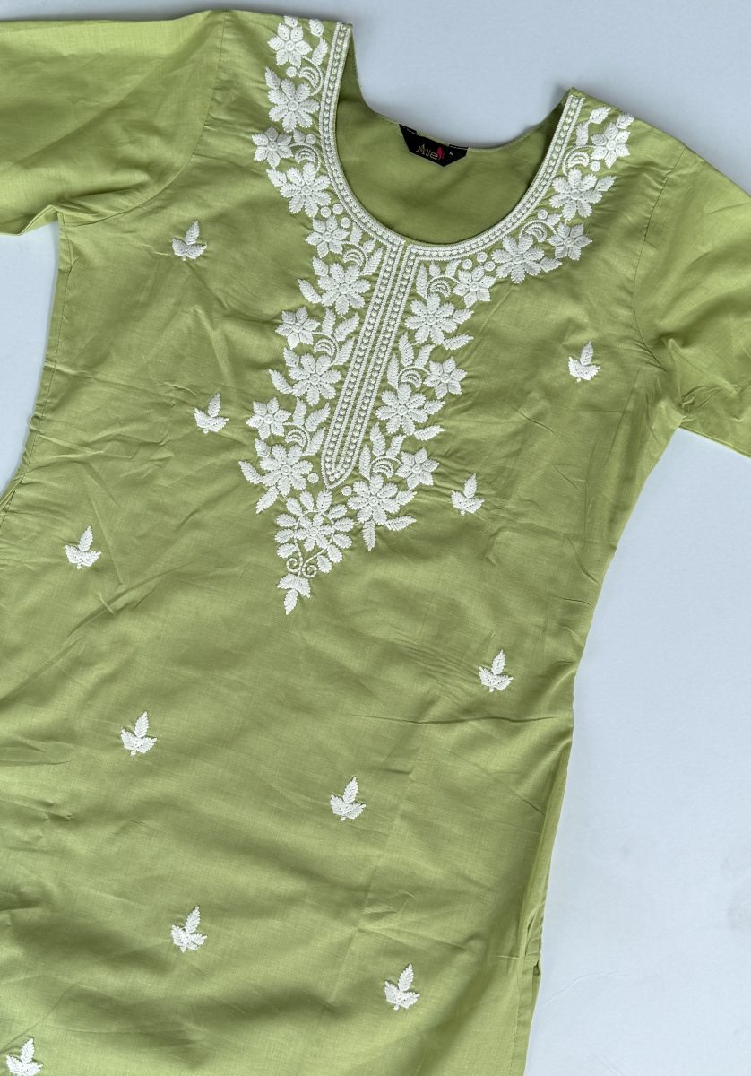 KCH0067:Apple Green Cotton Chikankari Kurta Suit