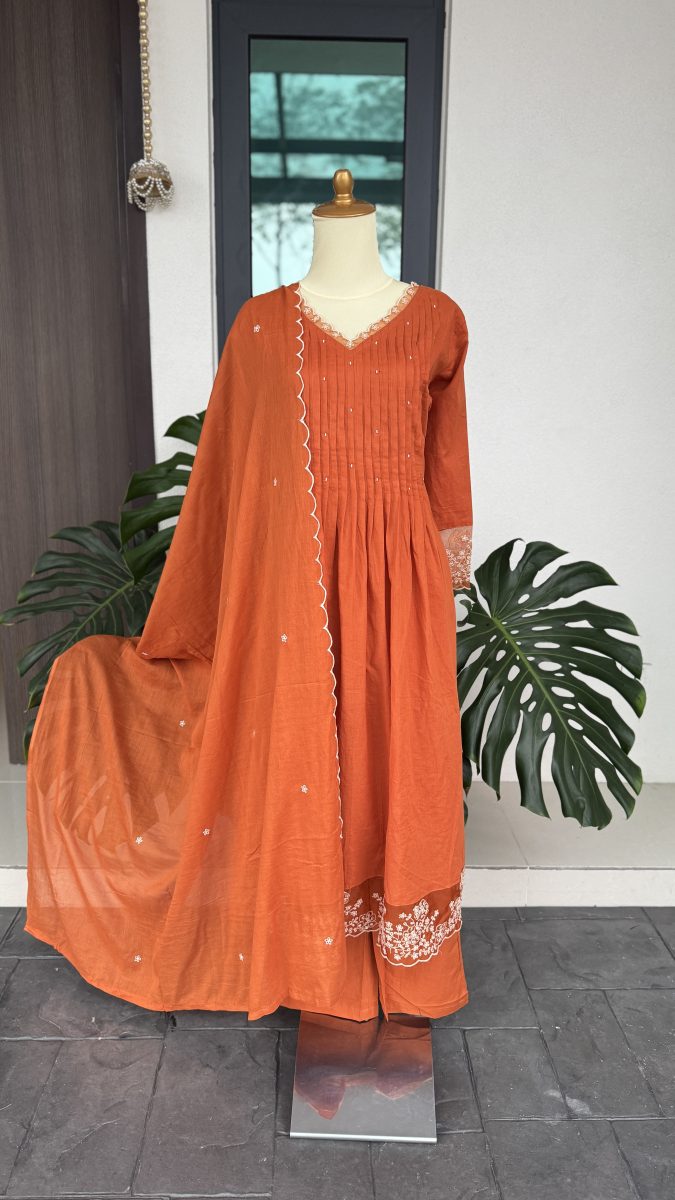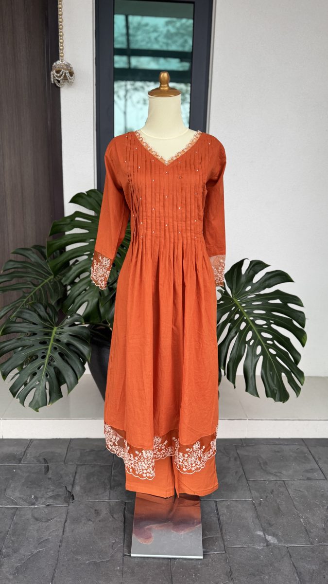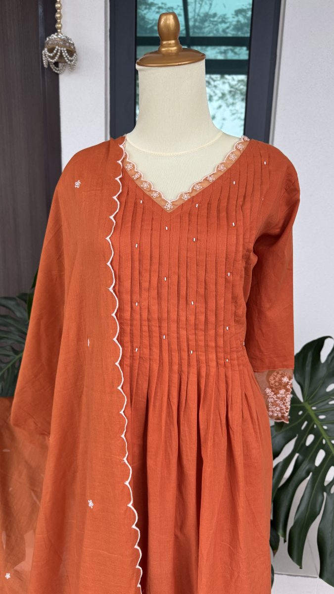 KCH0069:Rust Beauty With Lace Touch Pure Cotton Kurta Suit