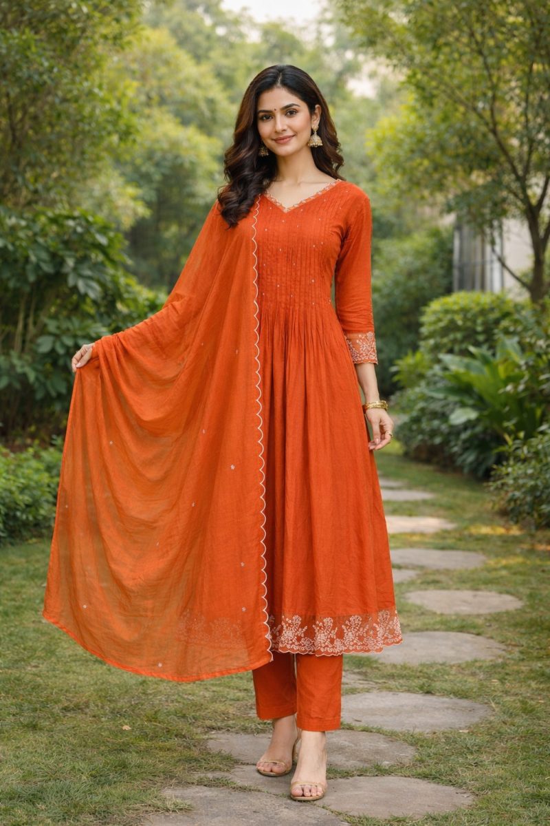 Rust Beauty With Lace Touch Pure Cotton Kurta Suit
