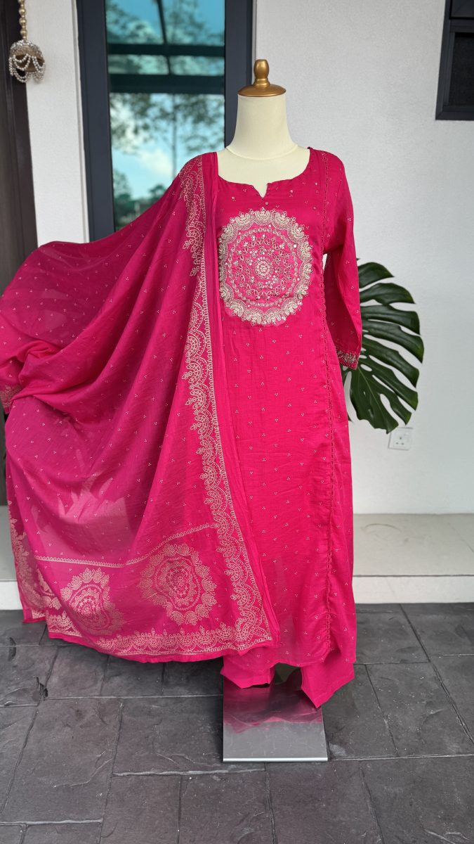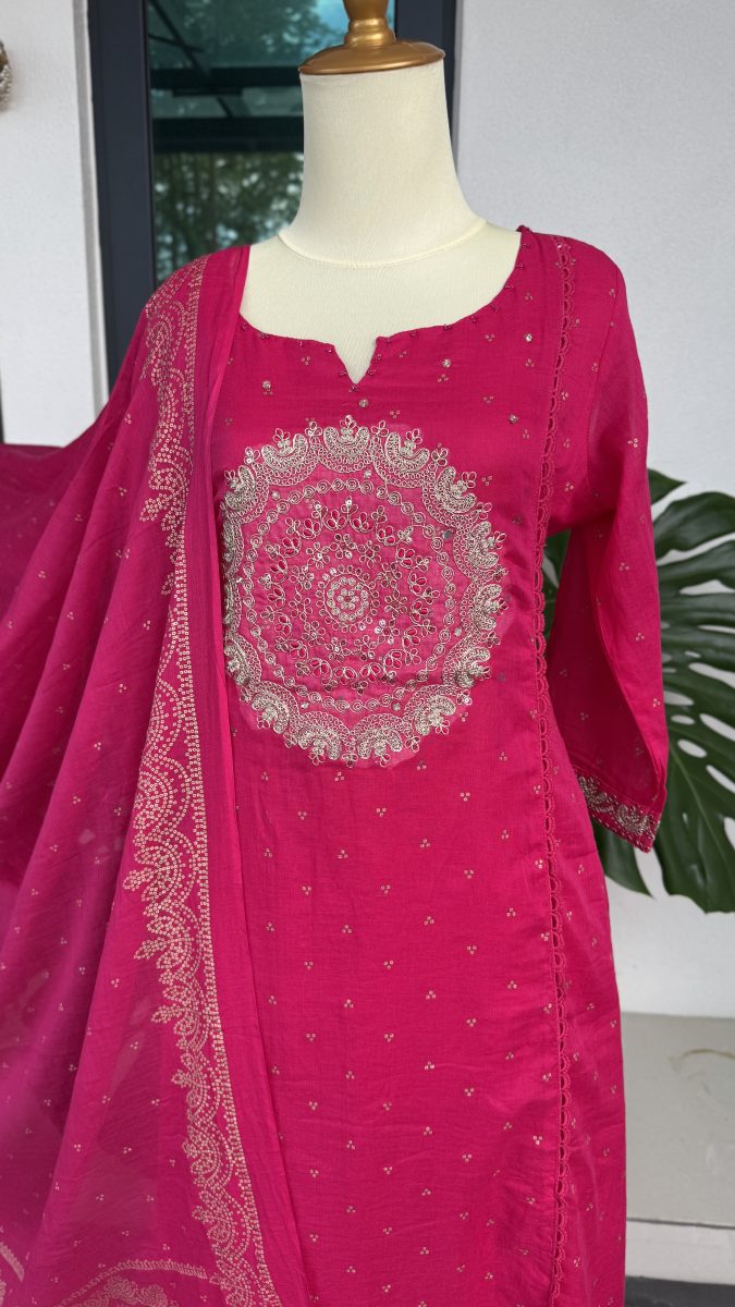 KCH0074:Rani Pink Embroidered Soft Mul Kurta Suit