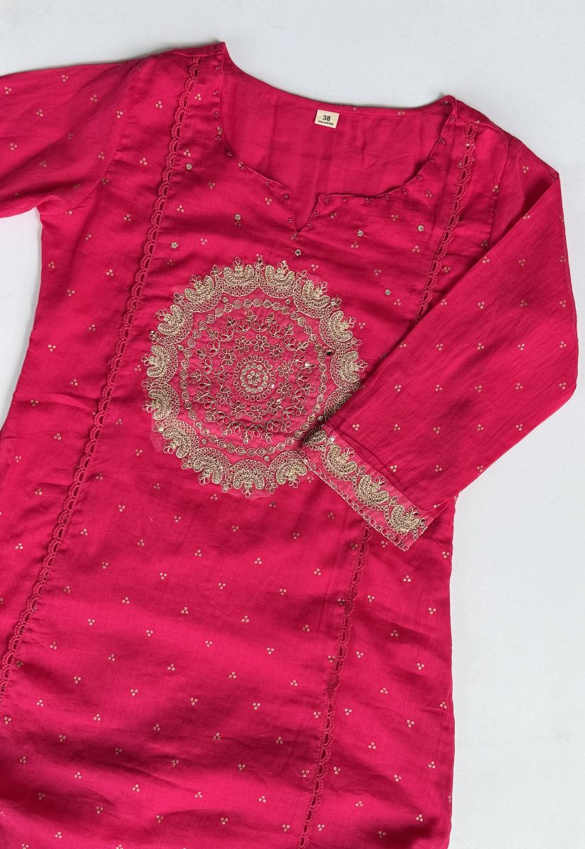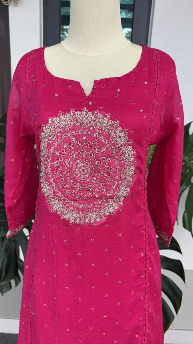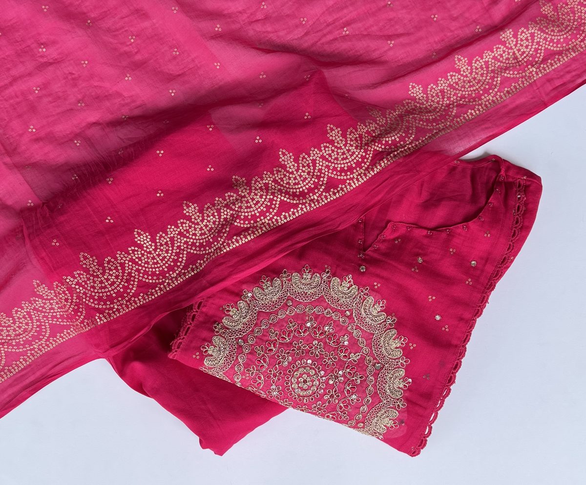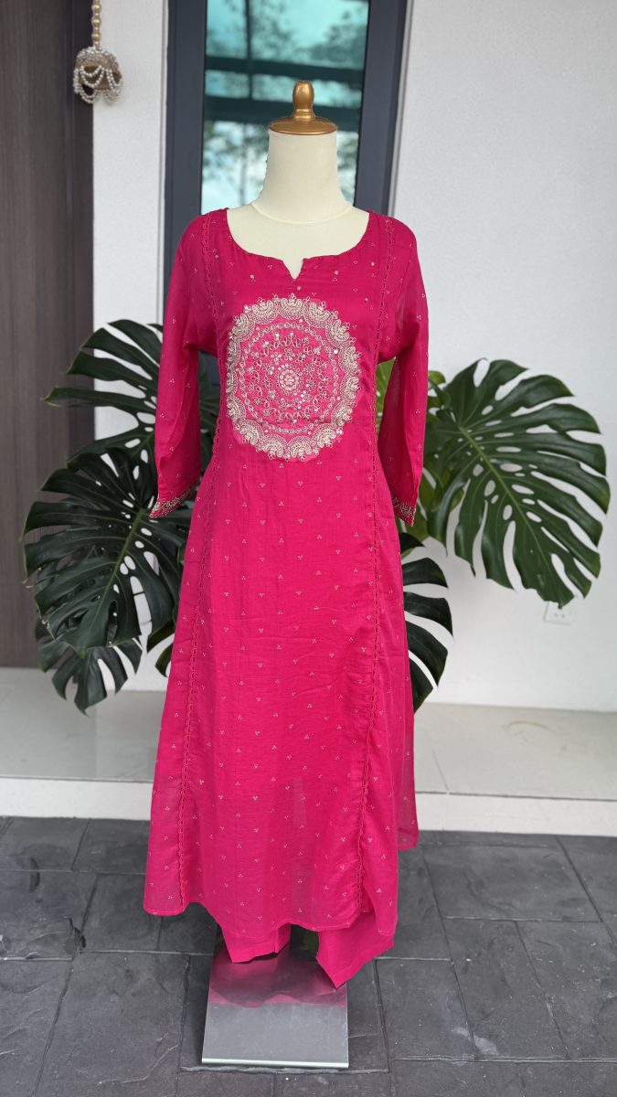Rani Pink Embroidered Soft Mul Kurta Suit