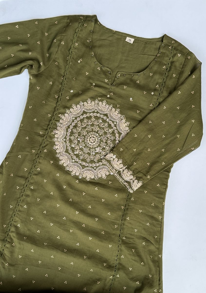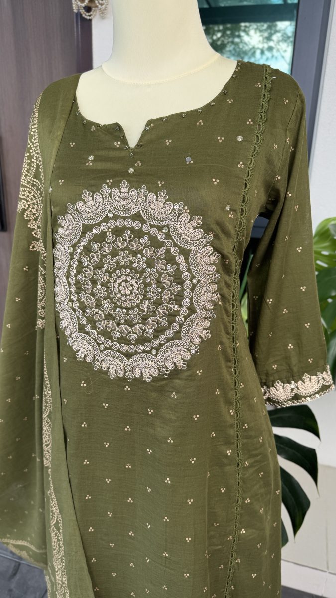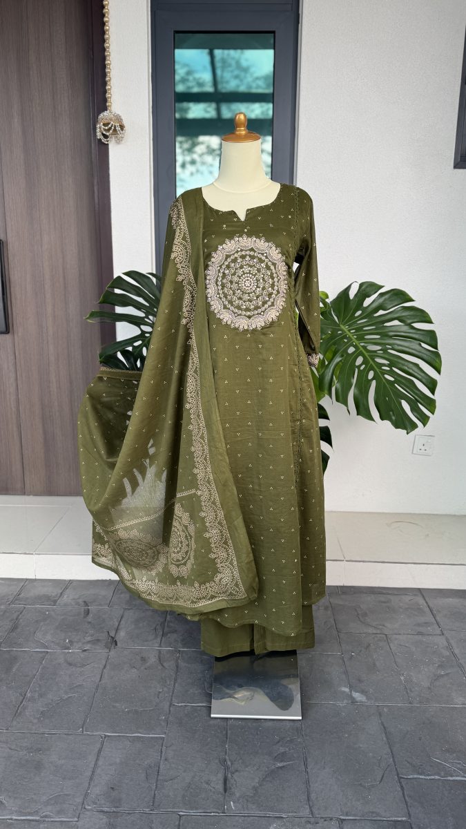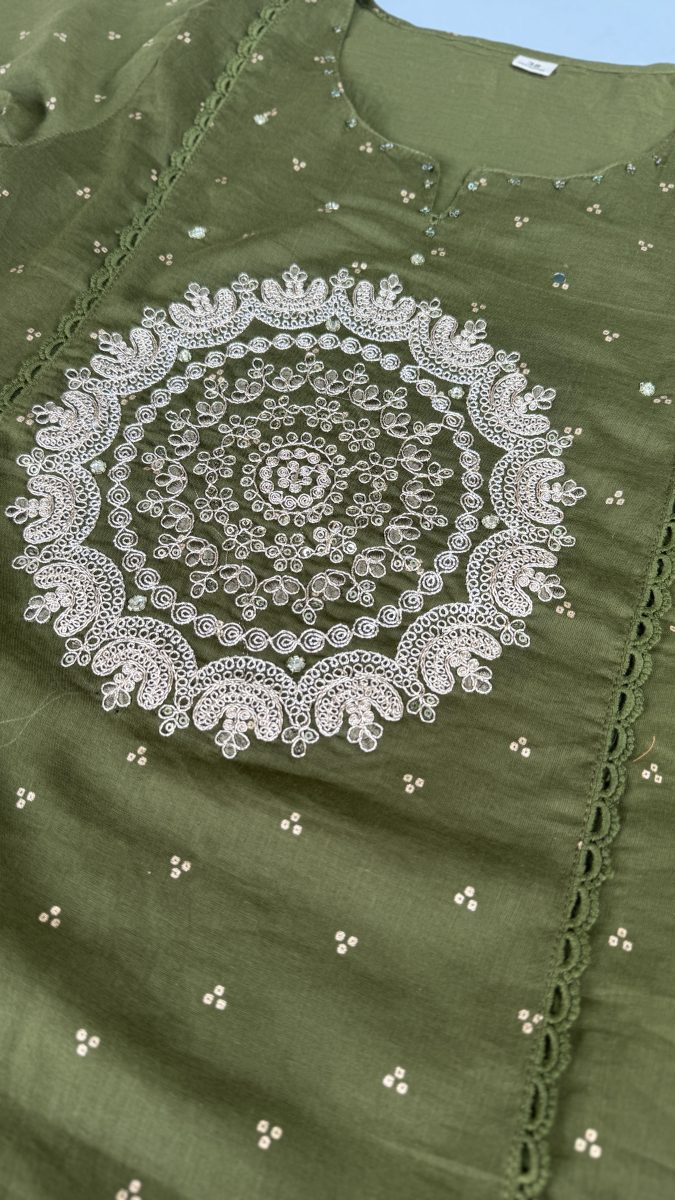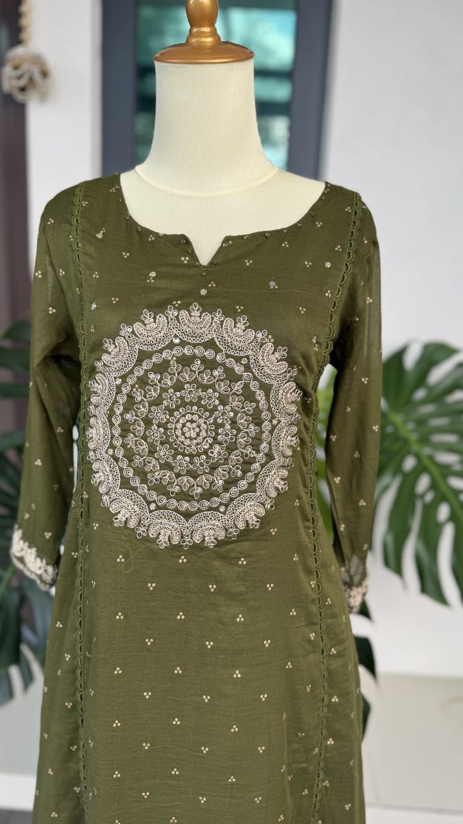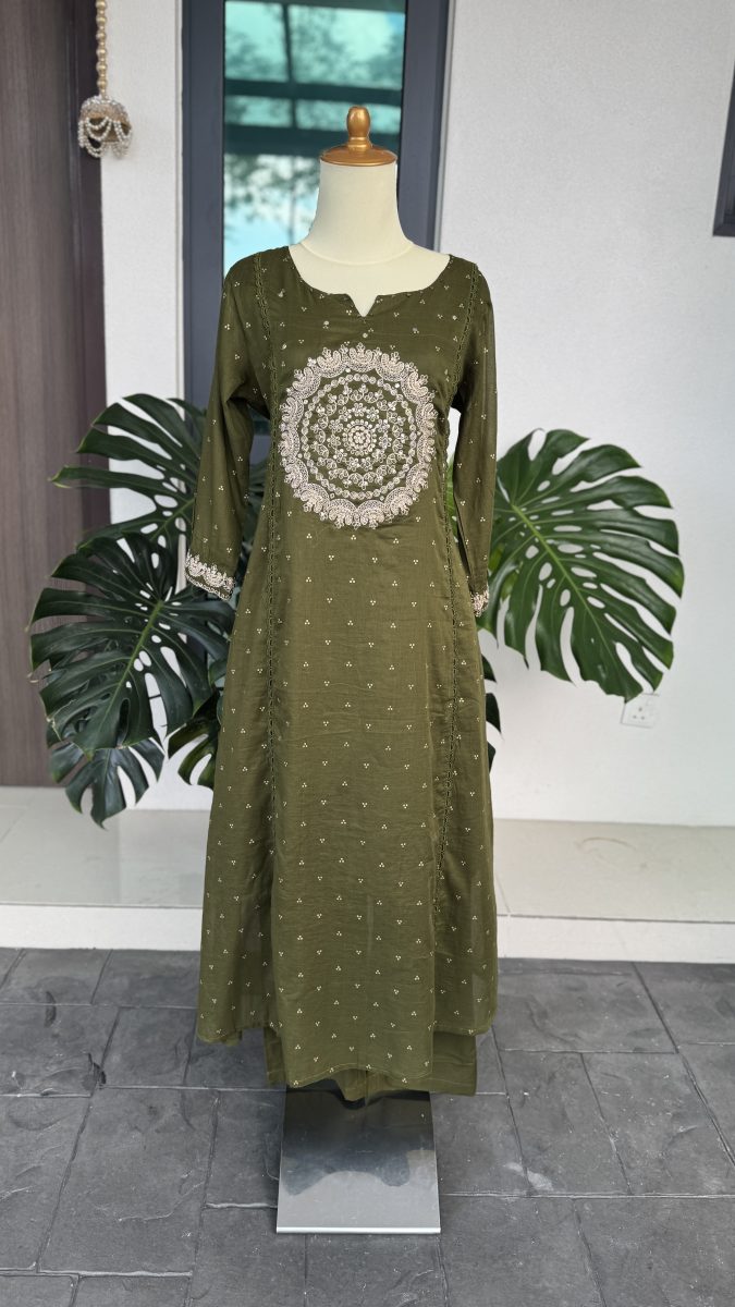 KCH0075:Olive Elegance Soft Mul Cotton Kurta Suit