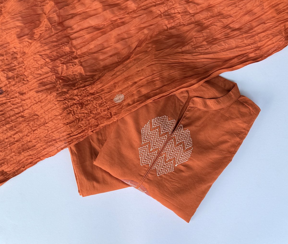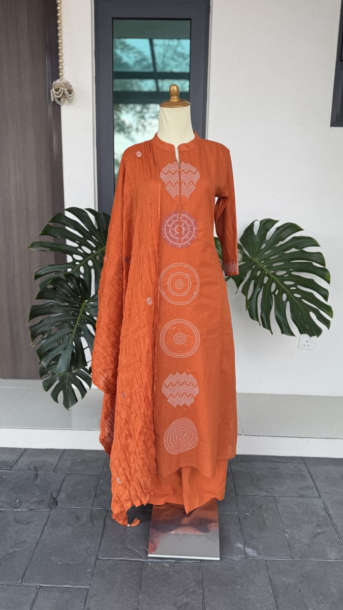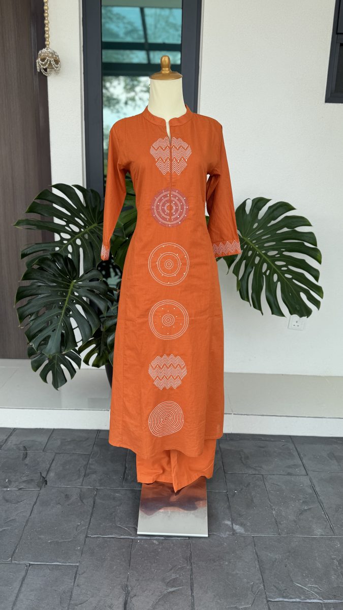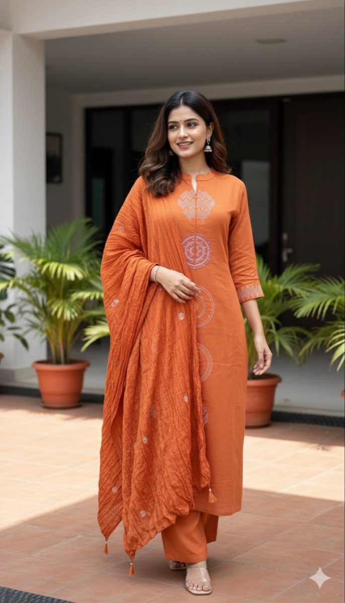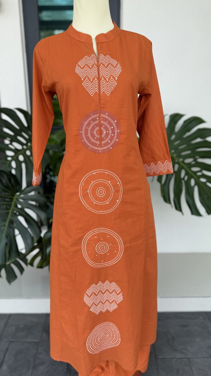 KCH0019:Cocoa Bloom Embroidered Cotton Kurta Suit