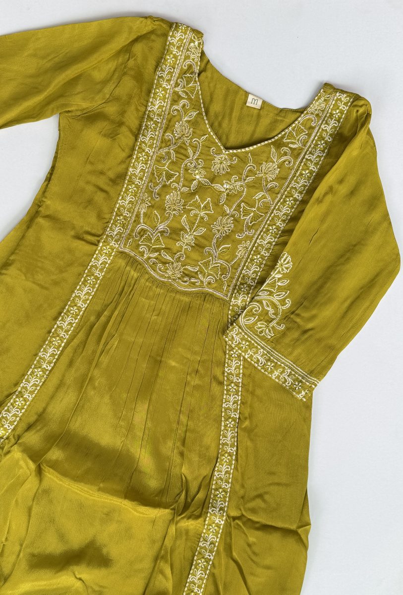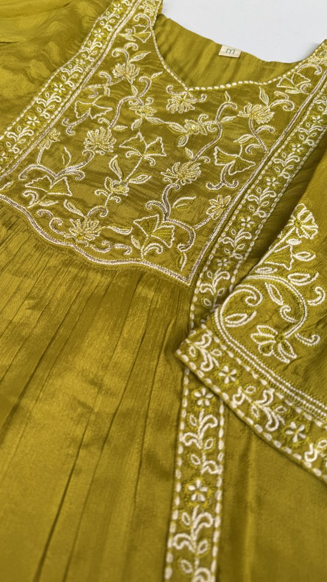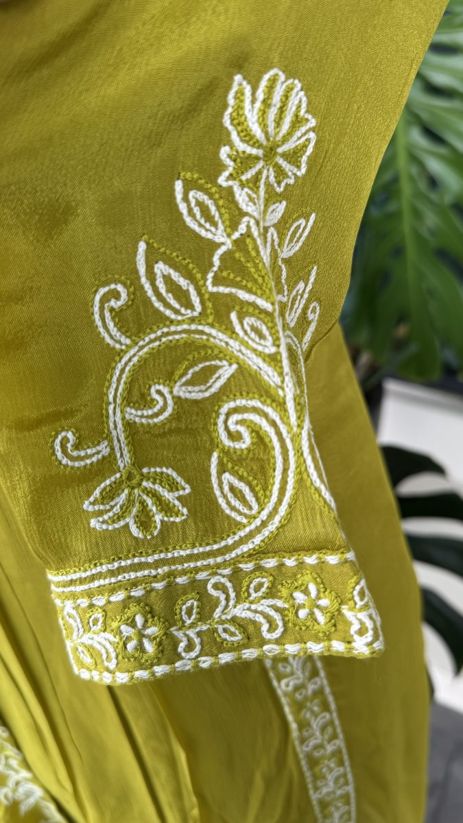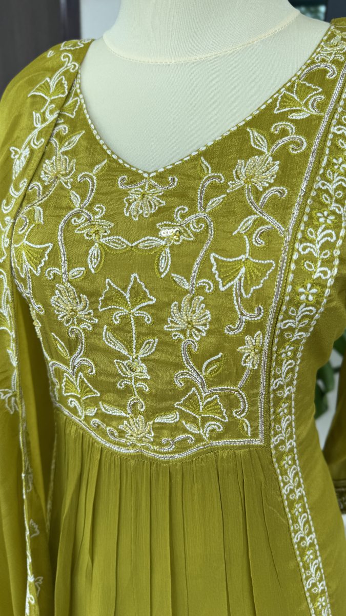 KCH0077:Parrot Green Pure Chinon Kurta Suit
