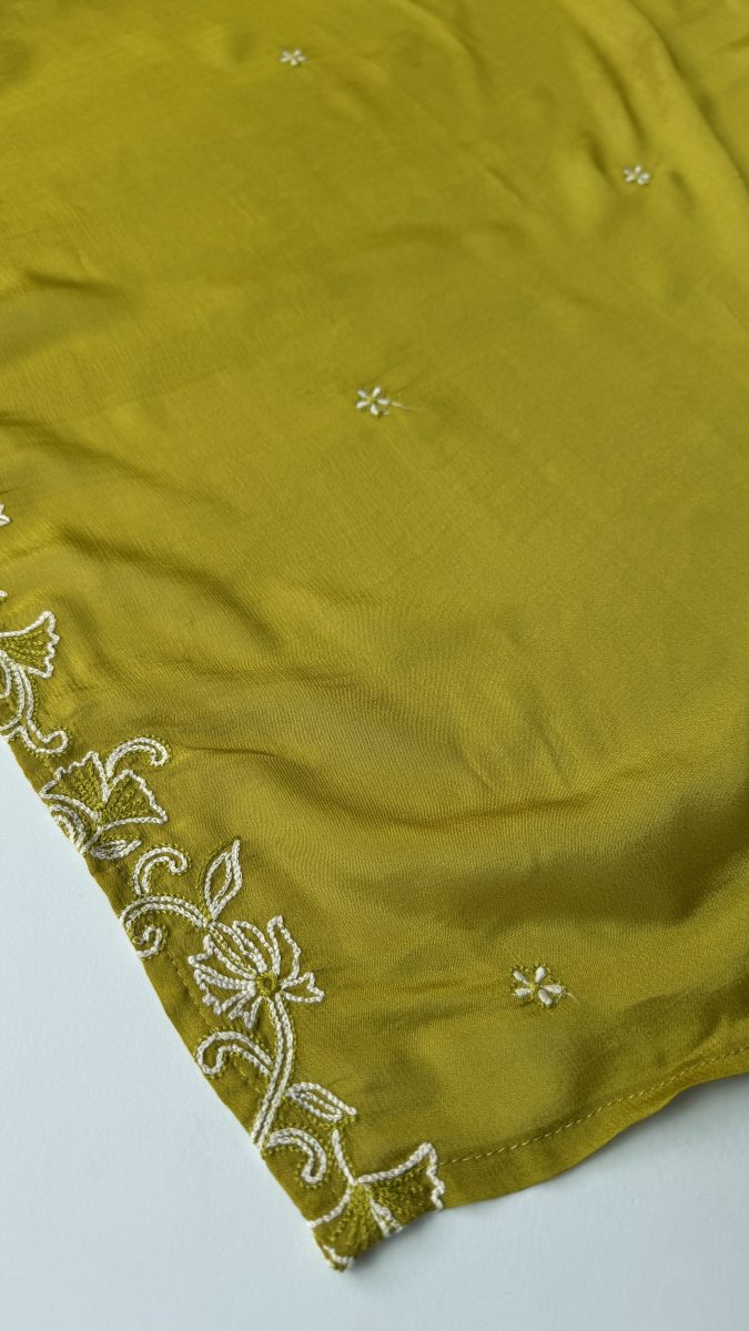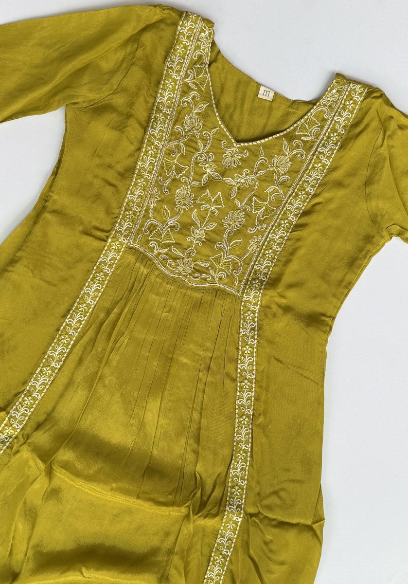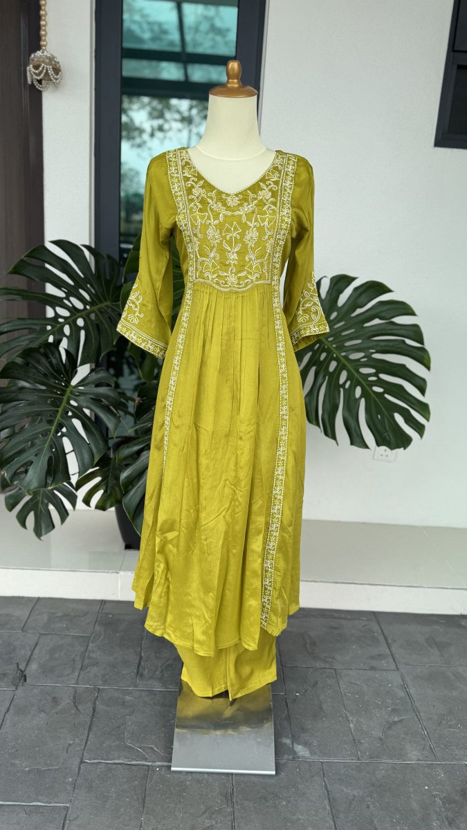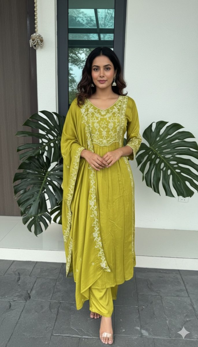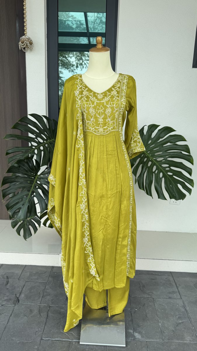 KCH0077:Parrot Green Pure Chinon Kurta Suit