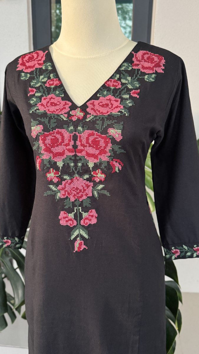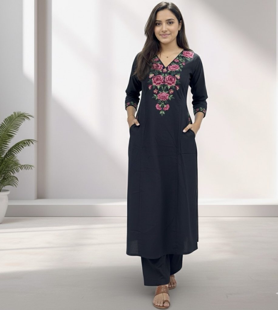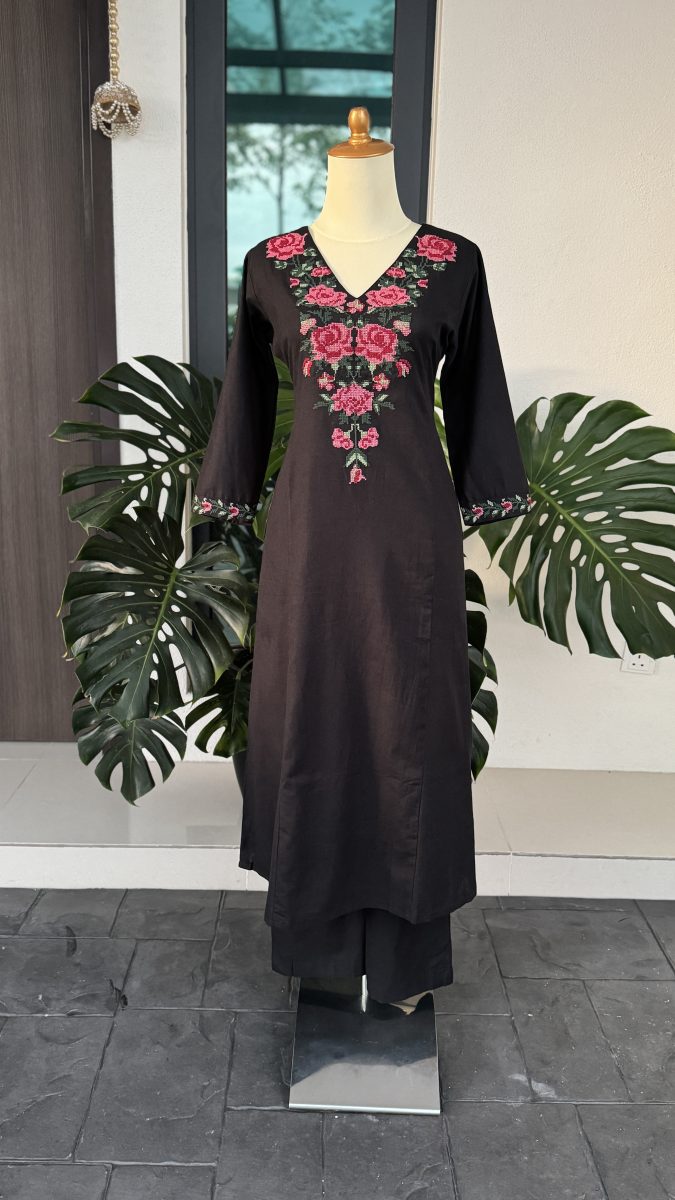 KCH0078:Black Blossom Pure Flex Cotton Coord Set