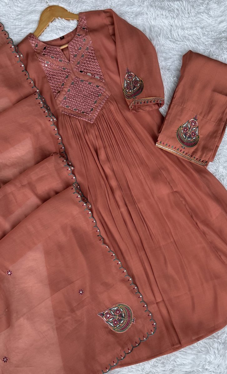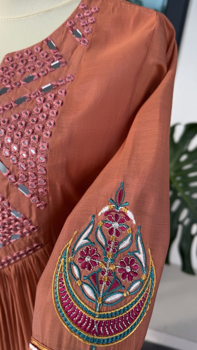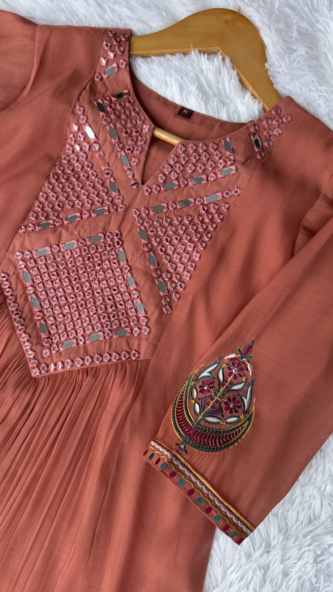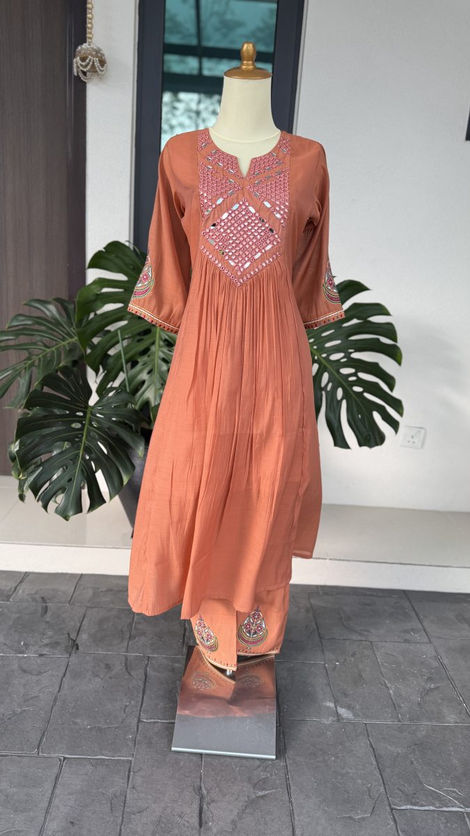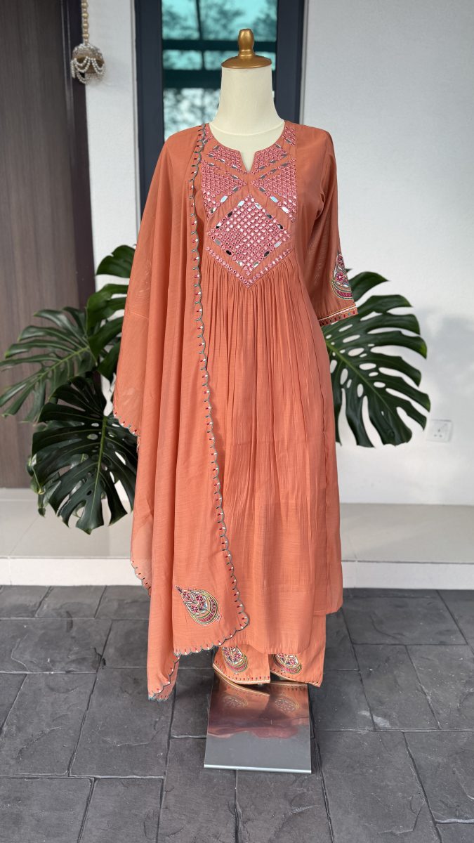 KCH0084:Pastel Orange Pure MulChanderi Mirror Work Suit