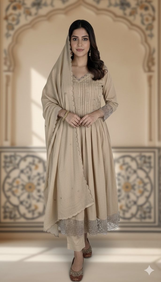 Soft Beige Cotton Kurta Suit