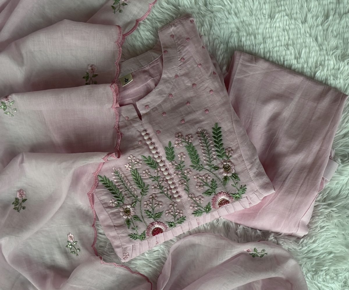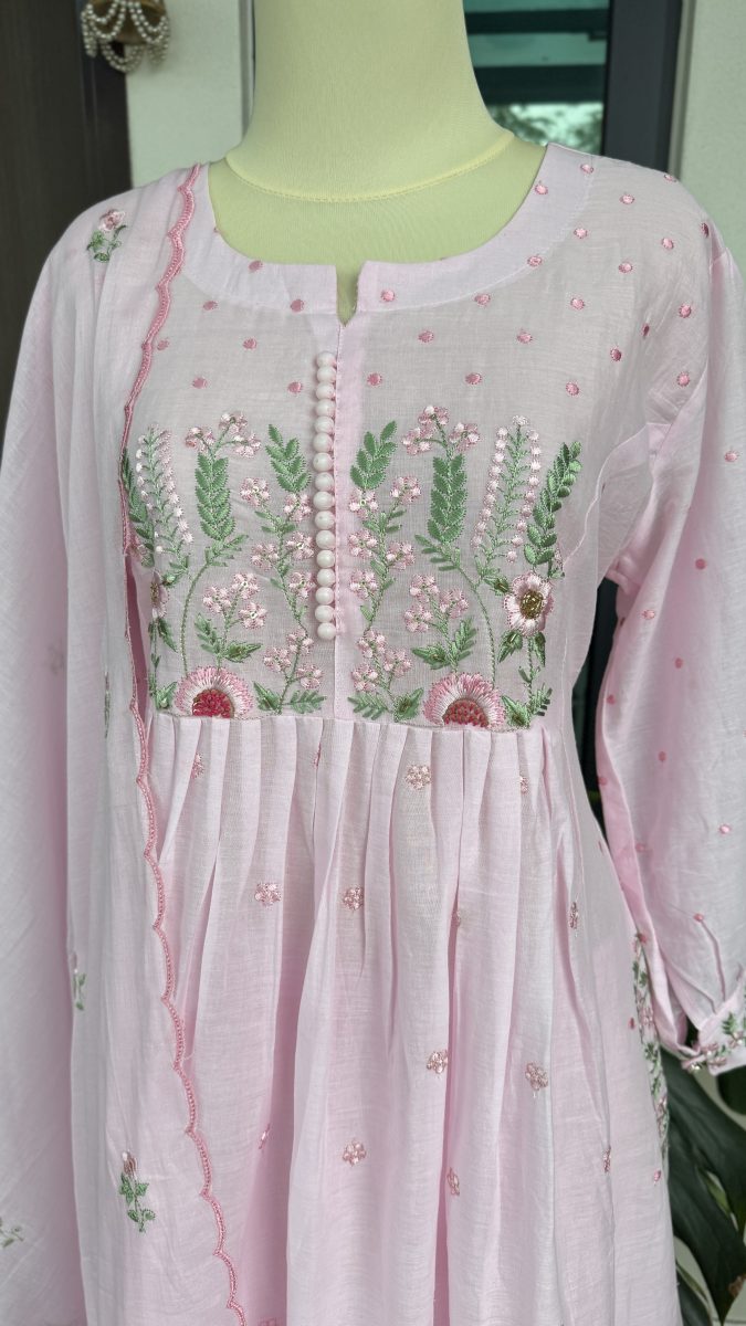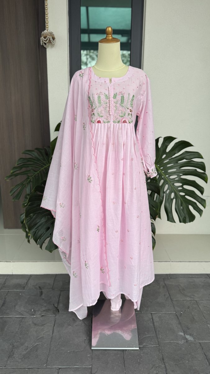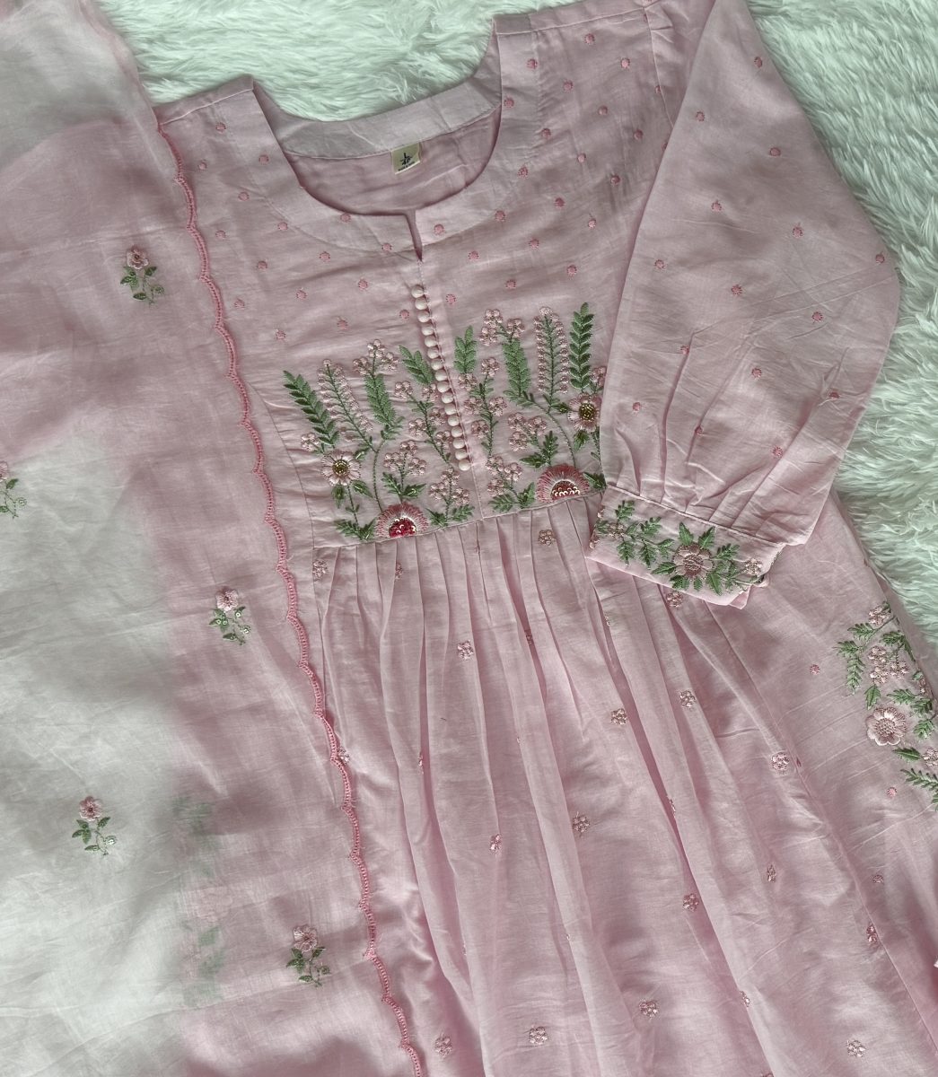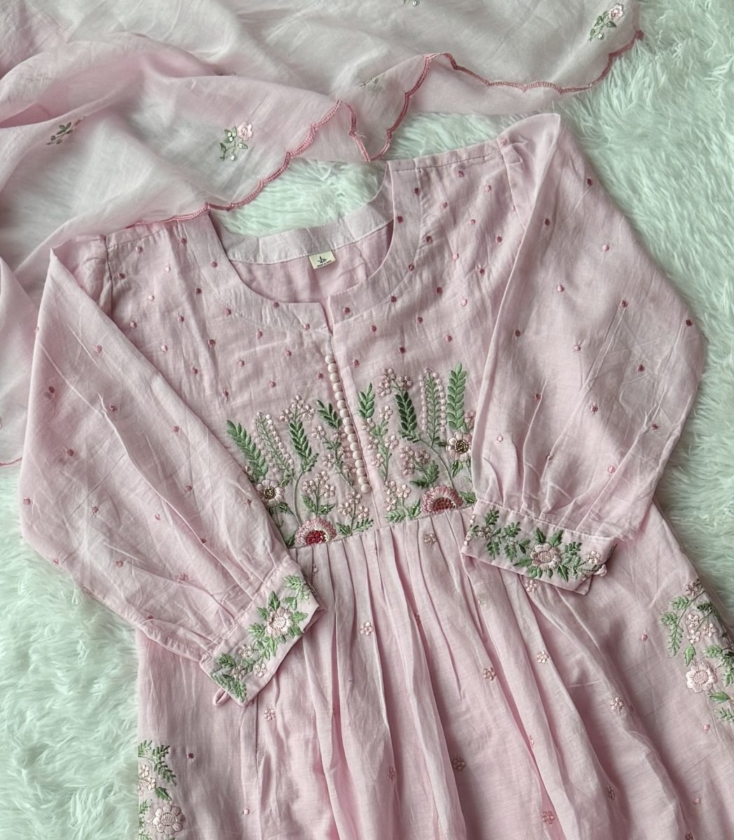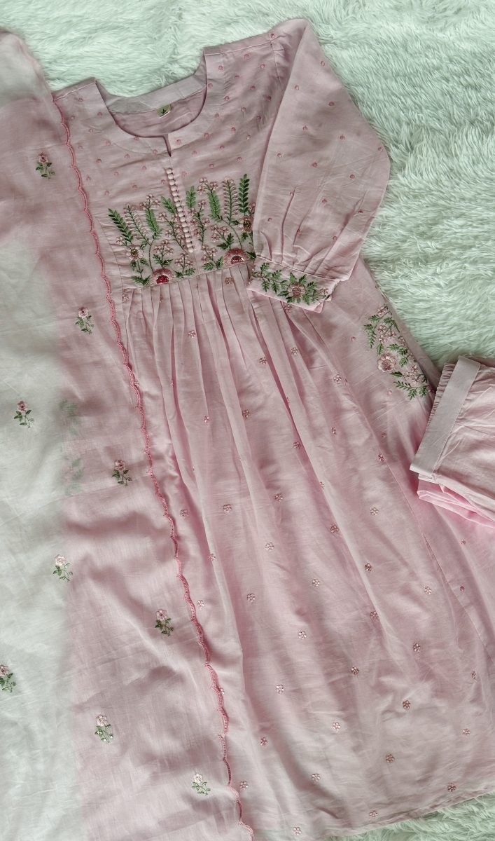 KCH0086:Yaara Embroidered Mul Cotton Kurta Suit