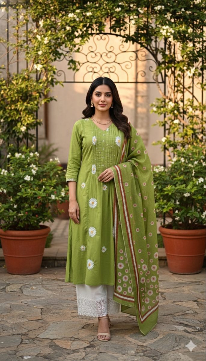 KCH0087:Daisy Bloom Cotton Kurta Suit