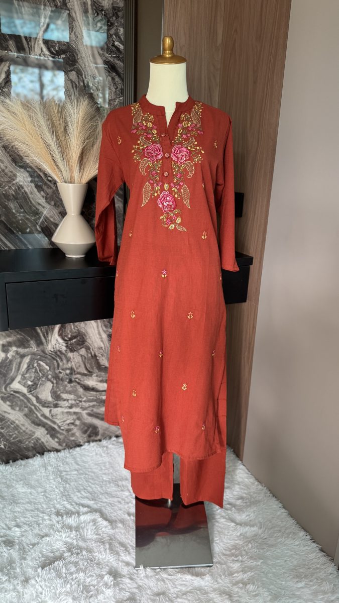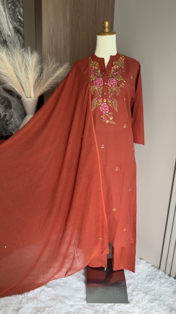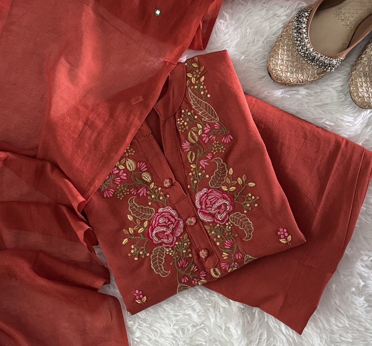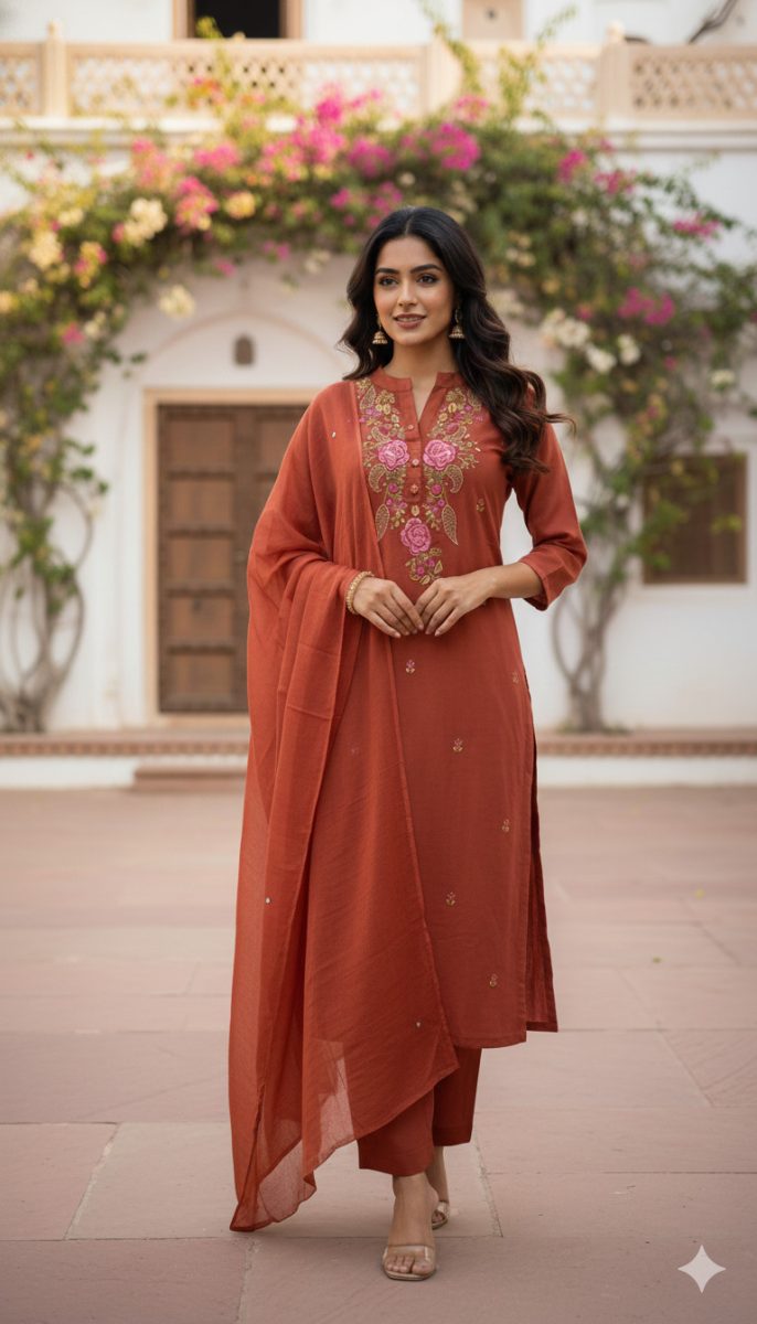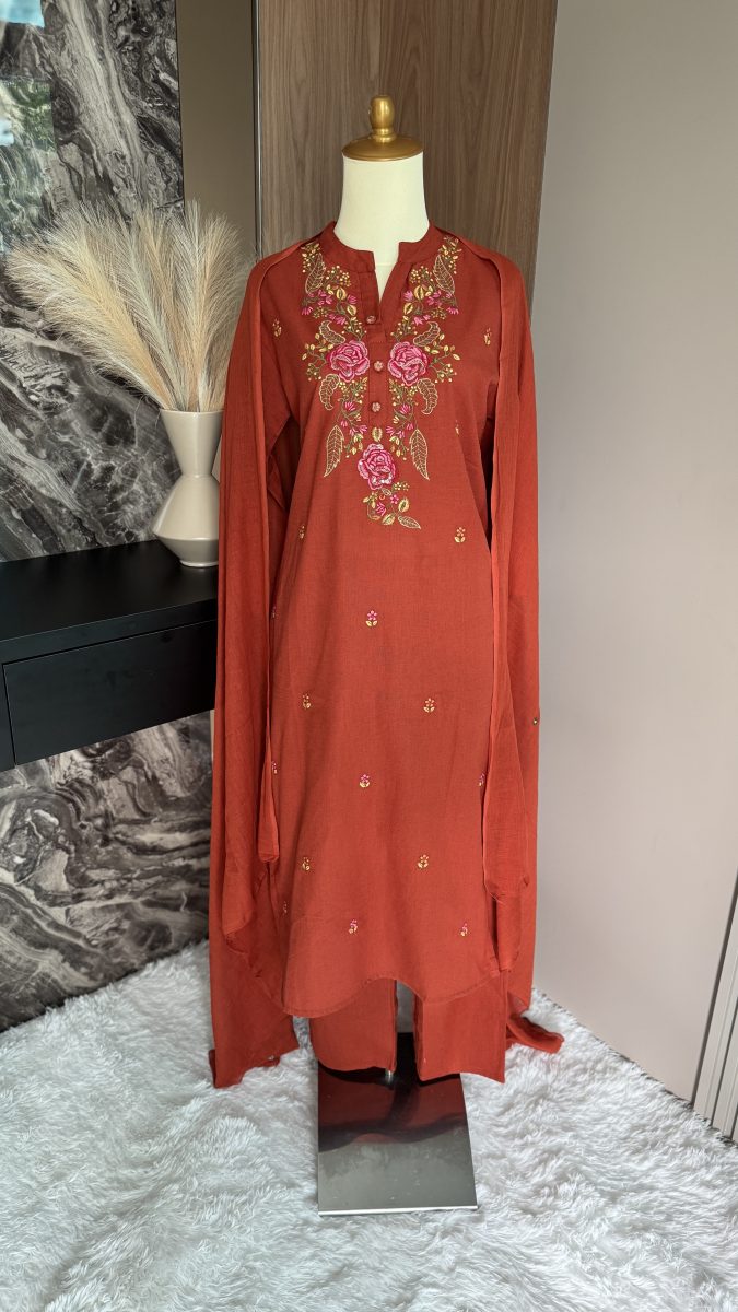 KCH0091:Autumn Rust Floral Kurta Suit quantity