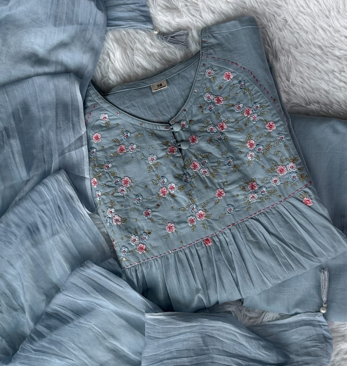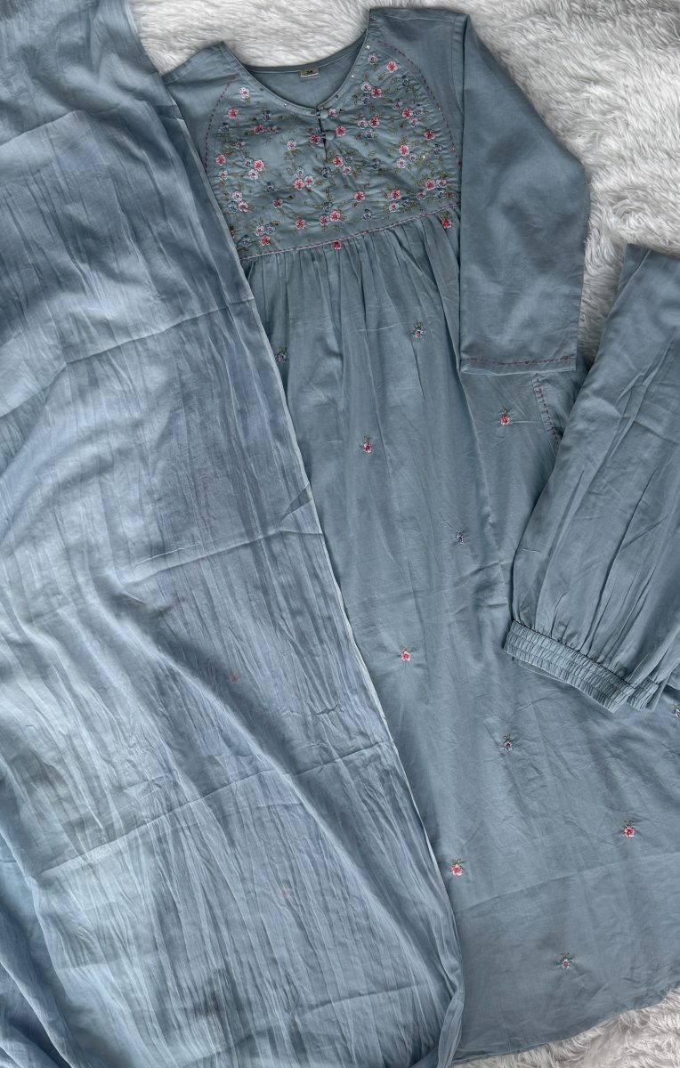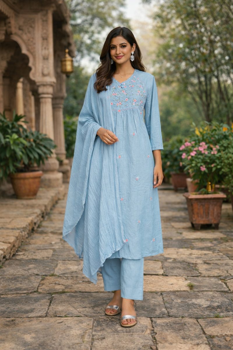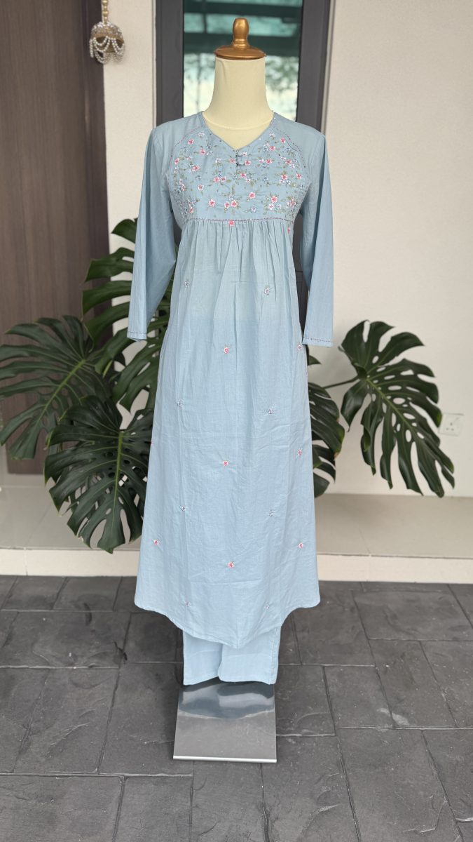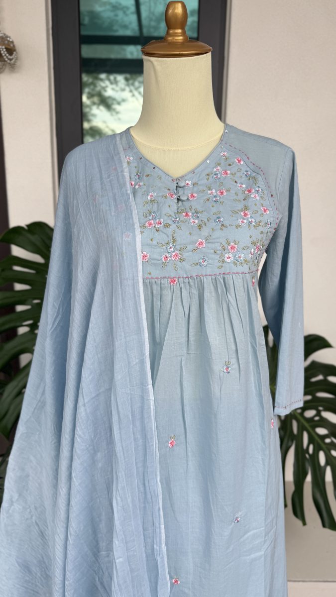 KCH0093:Azure Floral Cotton Kurta Suit