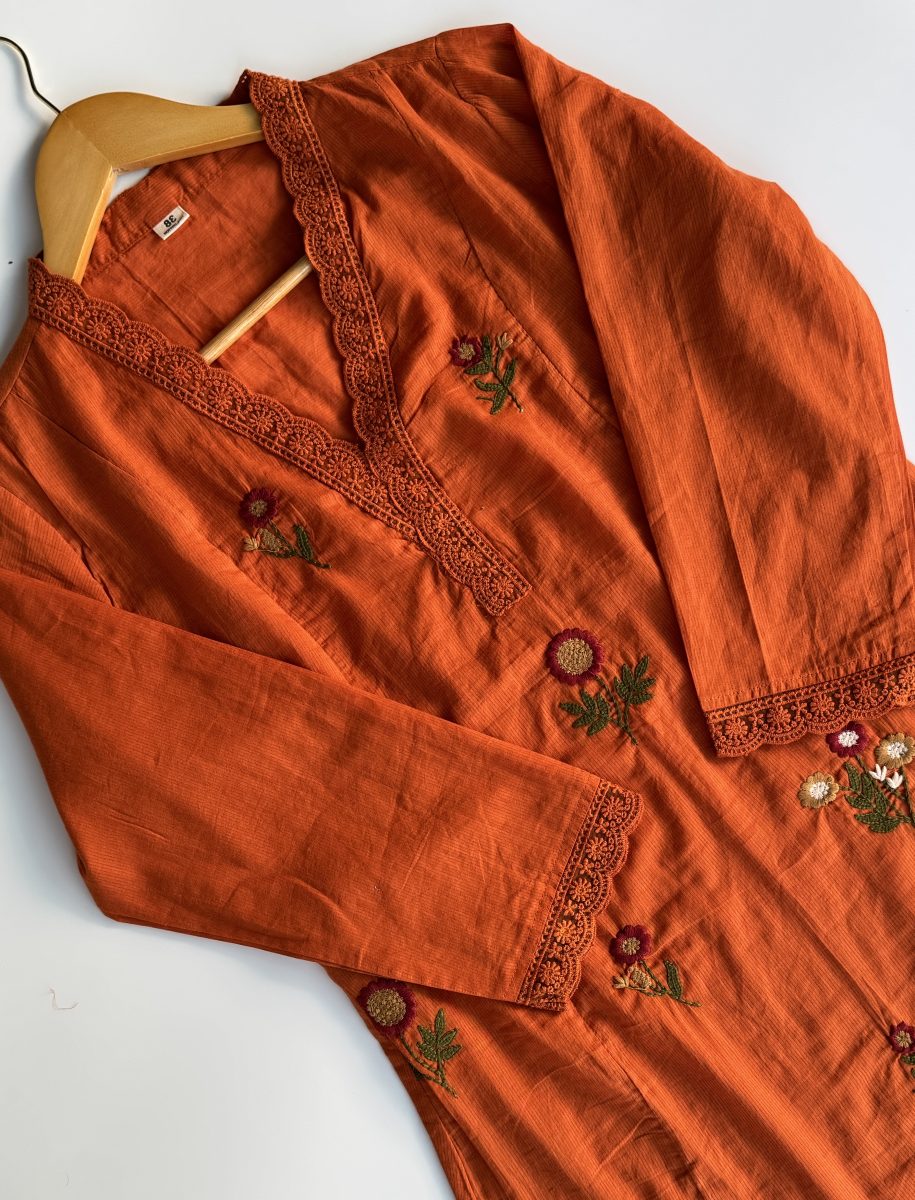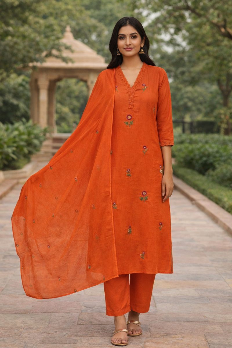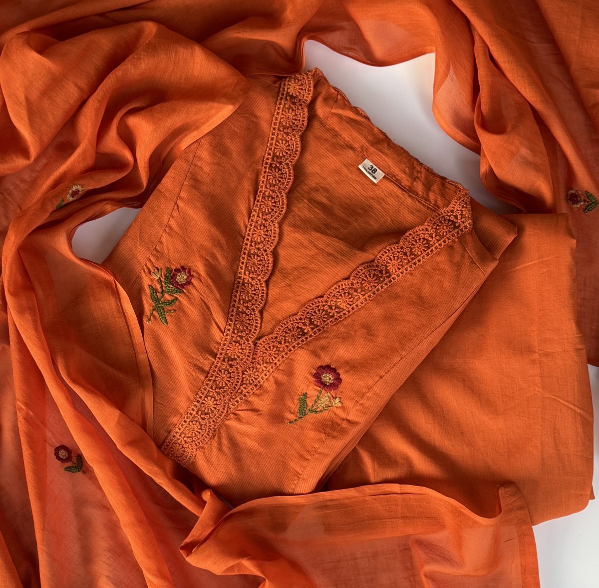 KCH0098:Aranya Orange Cotton Kurta Suit