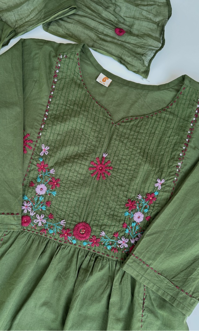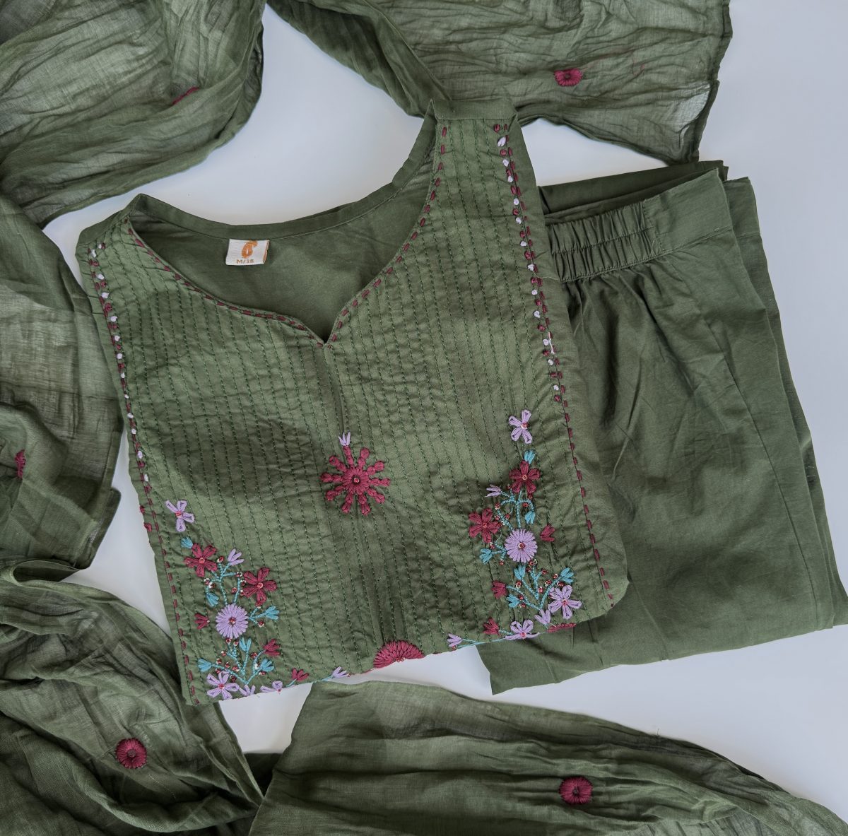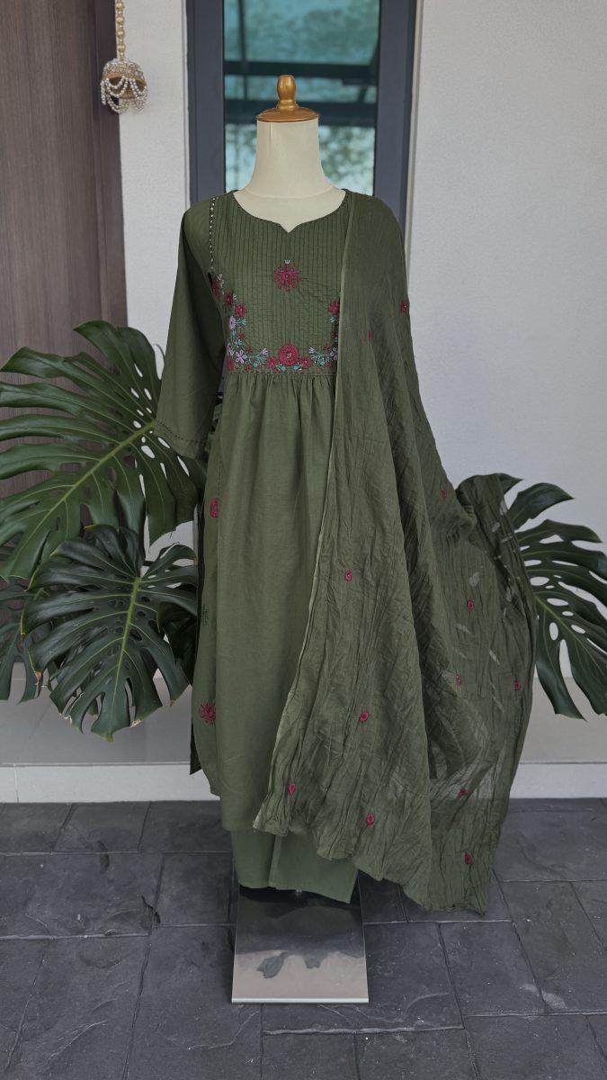 KCH0101:Olive Petal Light Cotton Kurta Suit
