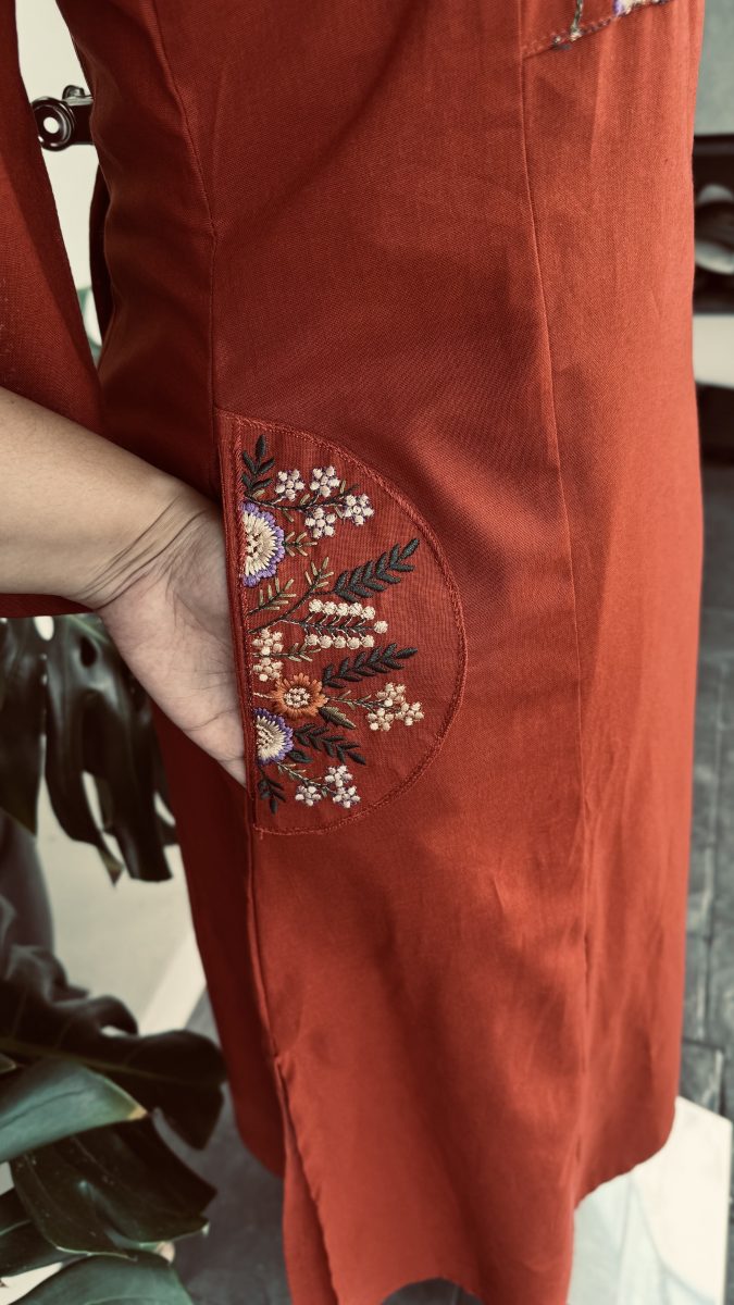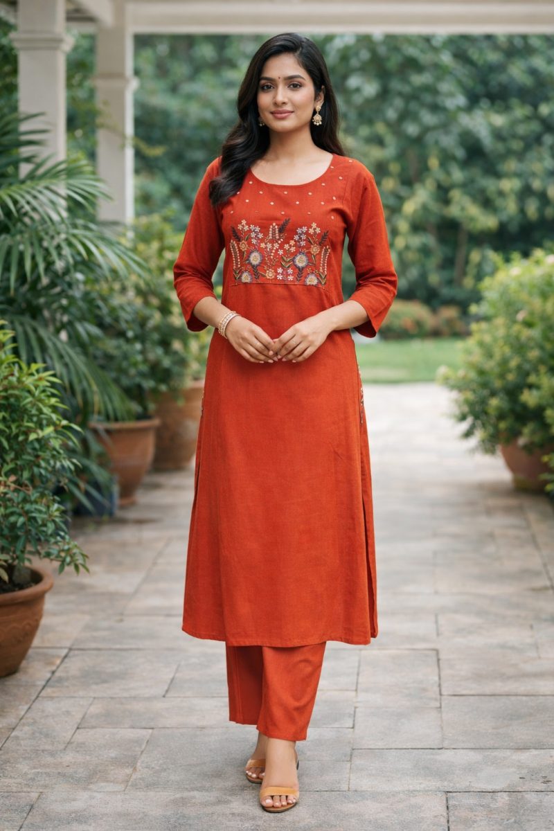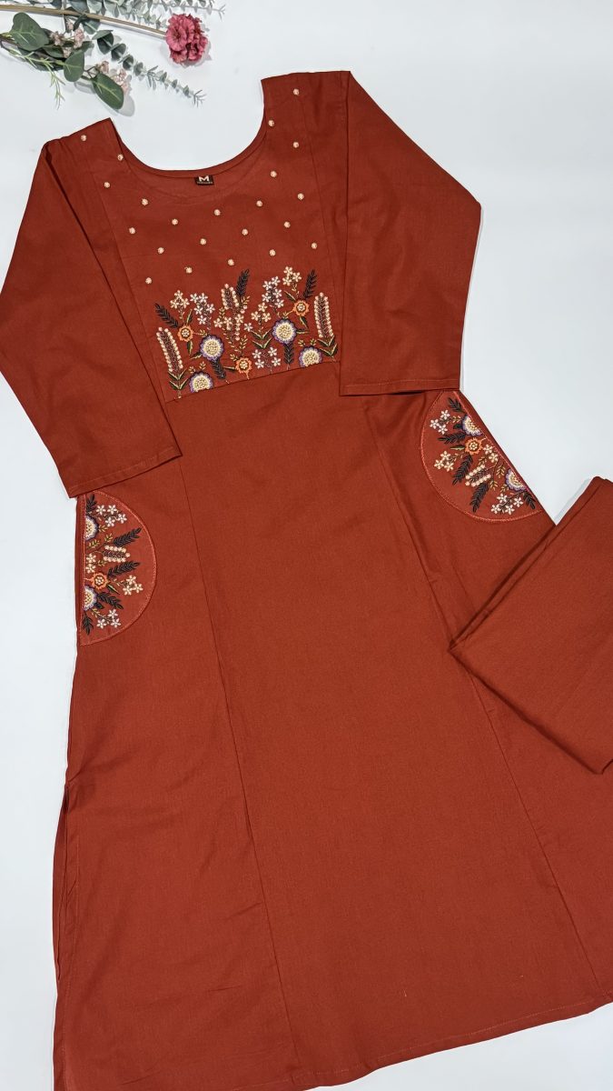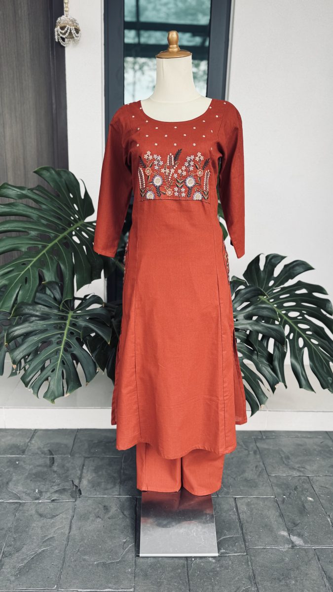 KCH0102:Rust Orange Floral Cotton Coord Set
