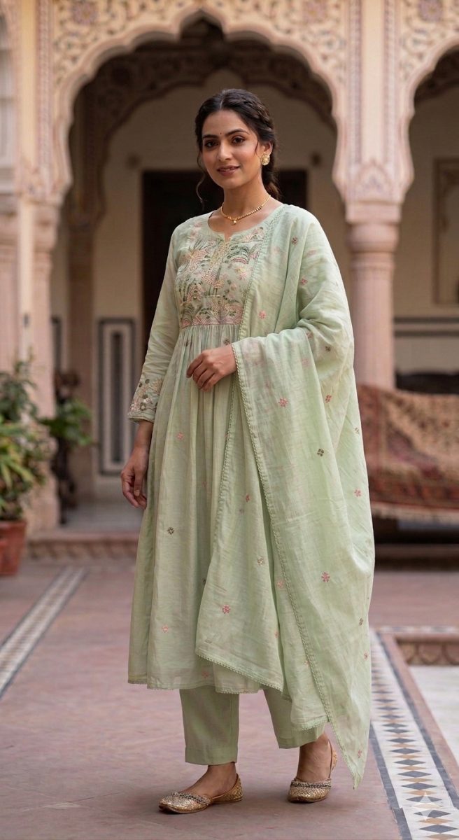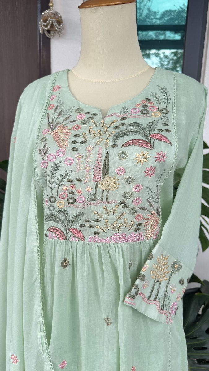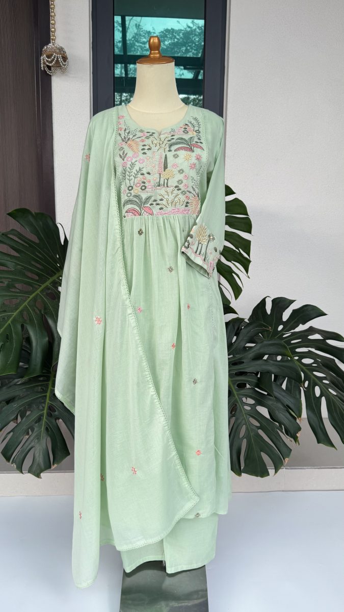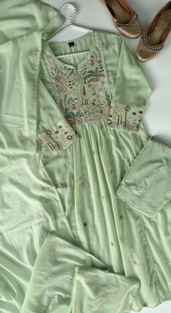 KCH0115:Pastel Petal Pure Mul Cotton Suit