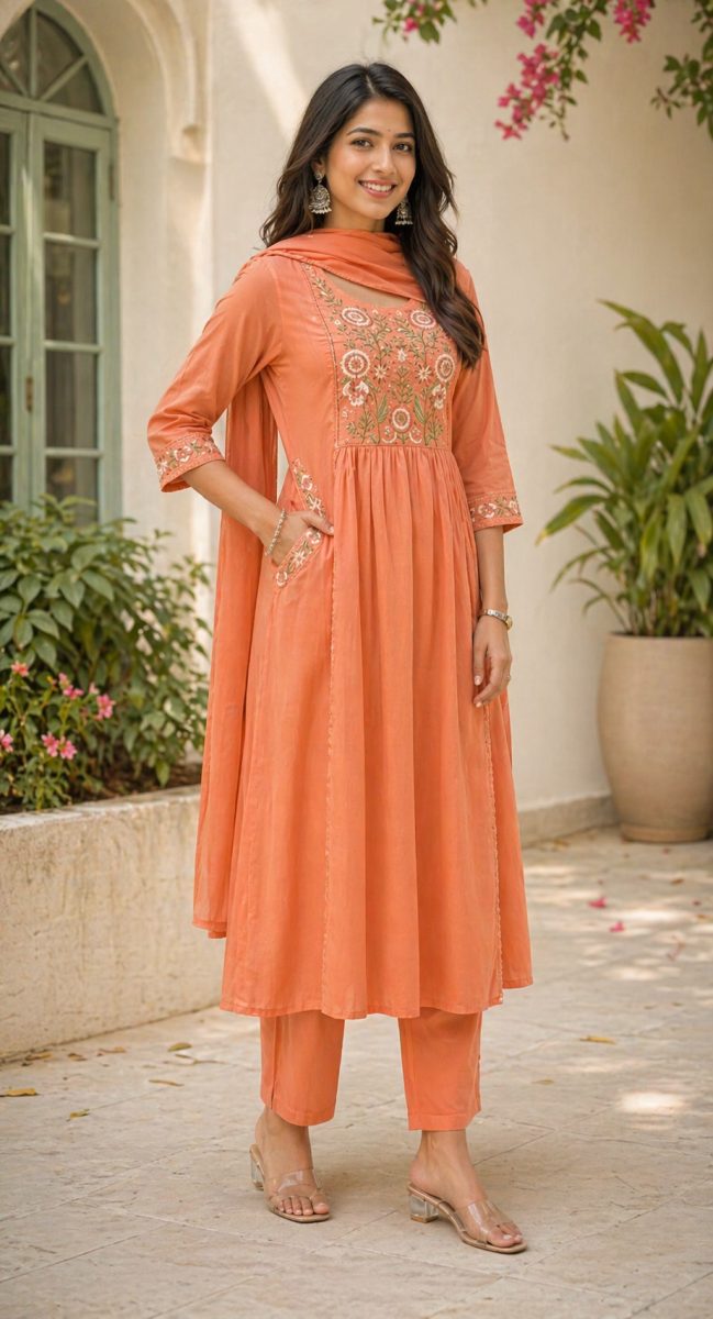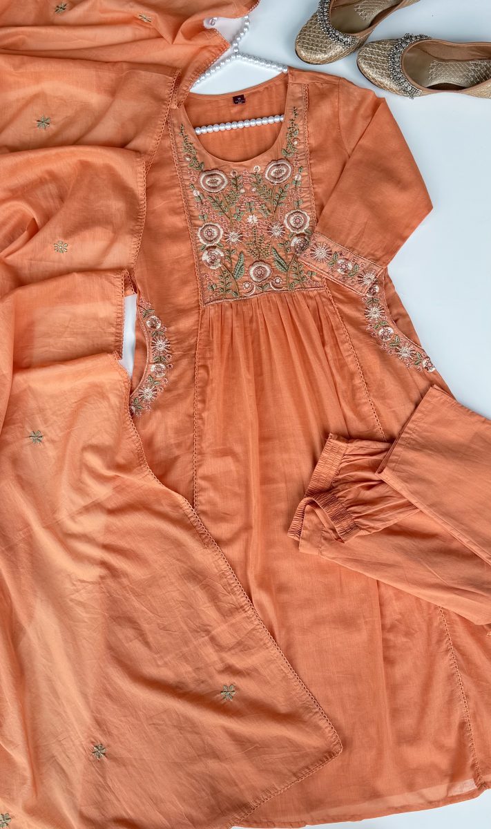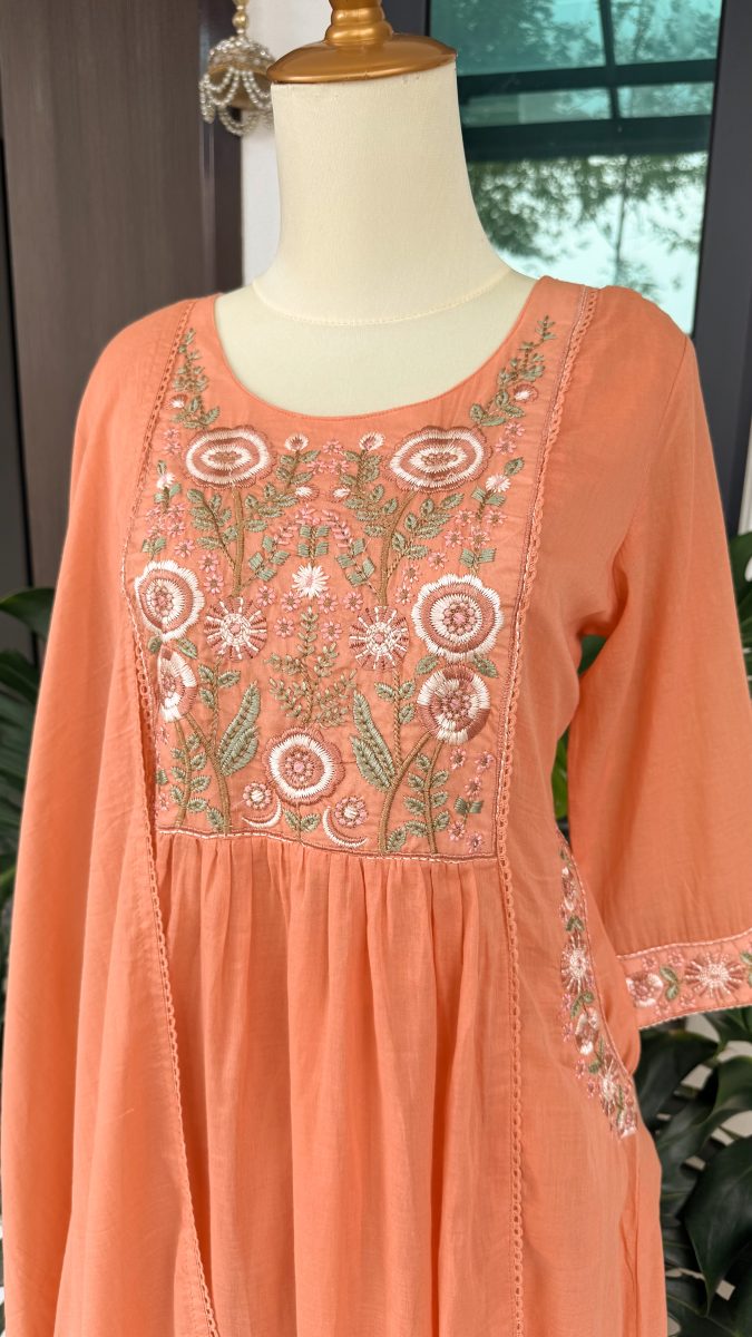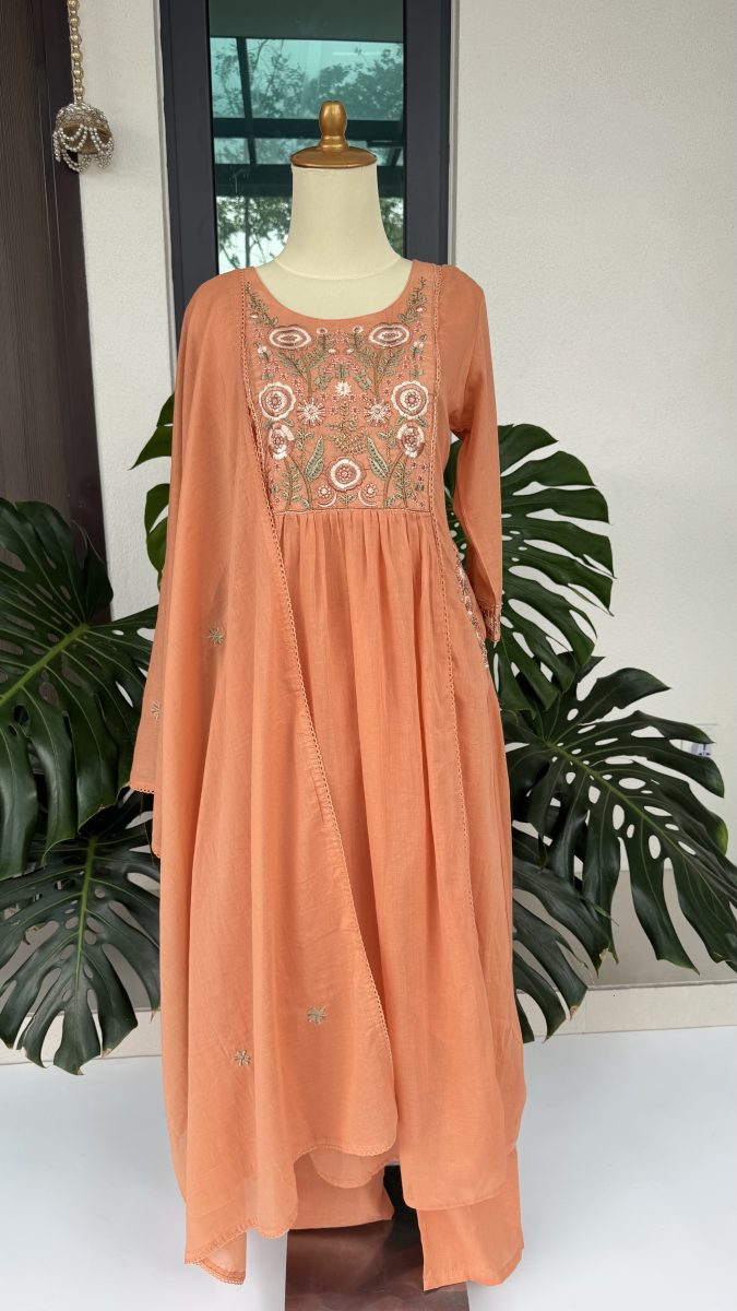KCH0119:Pastel Peach Pure Mul Cotton Suit